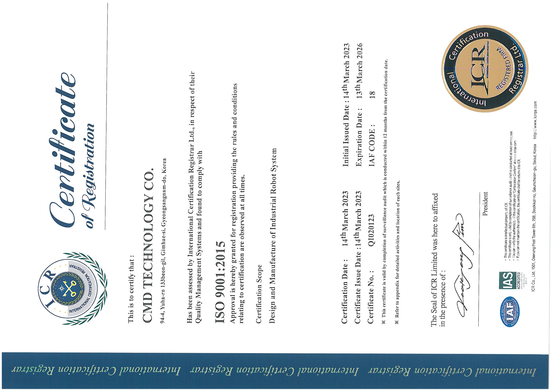 품질경영시스템인증서