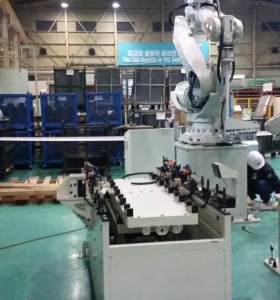 대한XXXX - 이탈방지압륜 후처리 로봇 자동화 라인은 총16가지 종류의 압륜을 공용화 시스템.